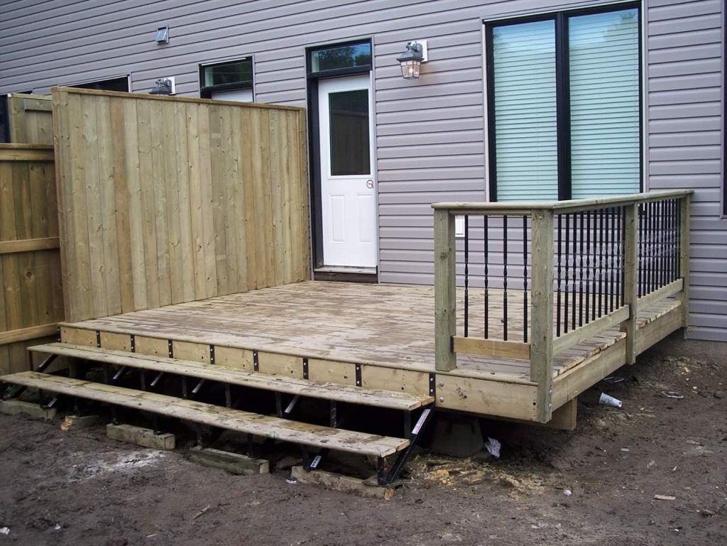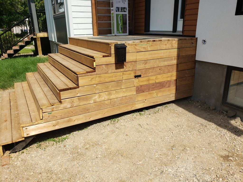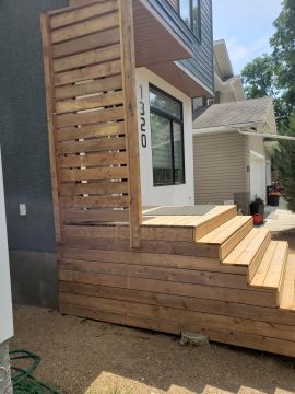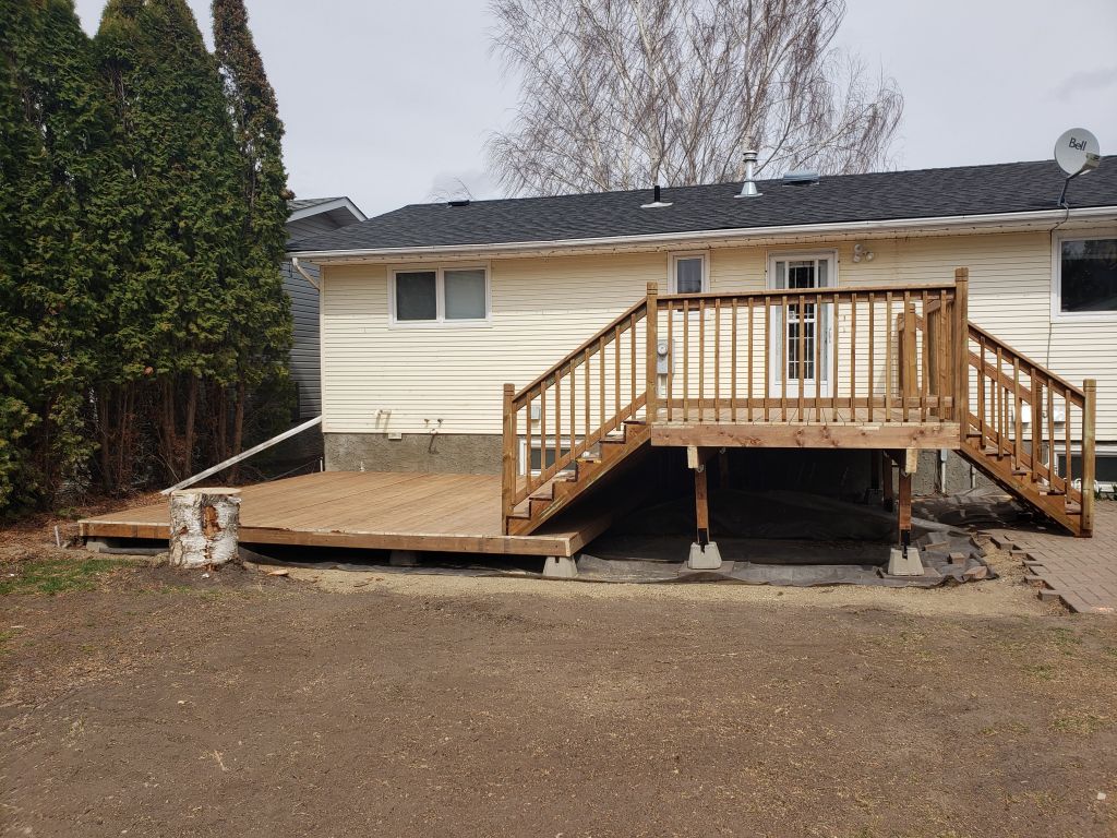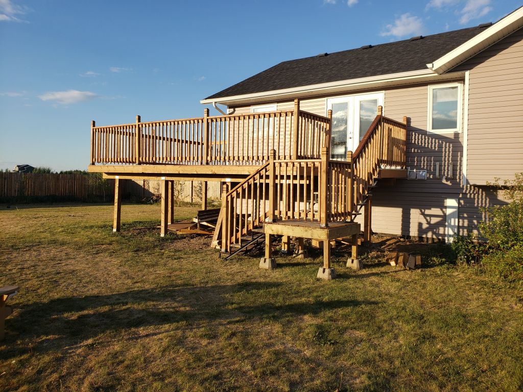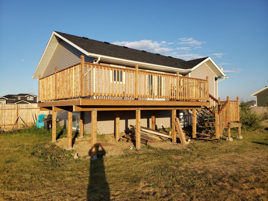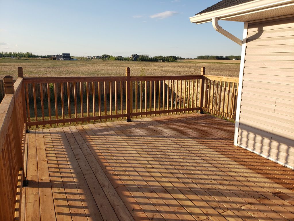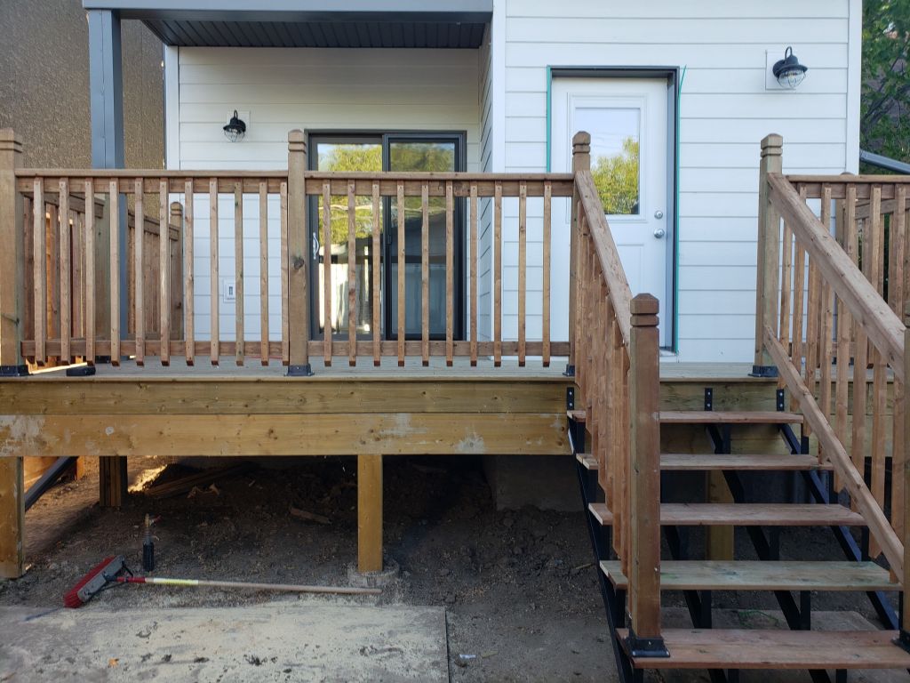 This deck was built on a new house and needed proper railing and stairs to be installed before it could be sold.