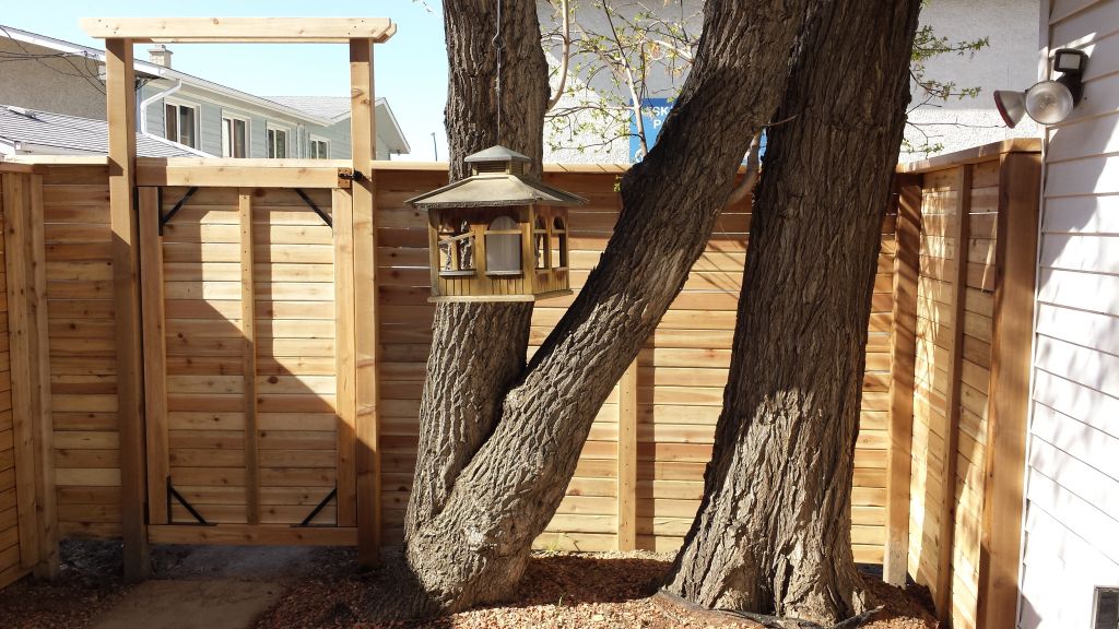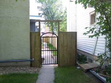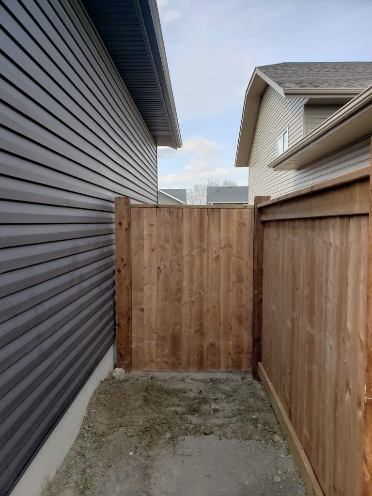 This is after replacing the existing fence with a new Brown pressure treated standard 6 foot fence and gate with 2 way latch/ handle
