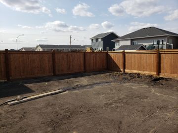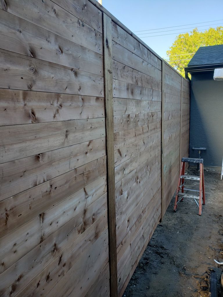 This is after building a new green pressure treated lumber standard 6 foot good neighbor style fence with 8 foot sections.