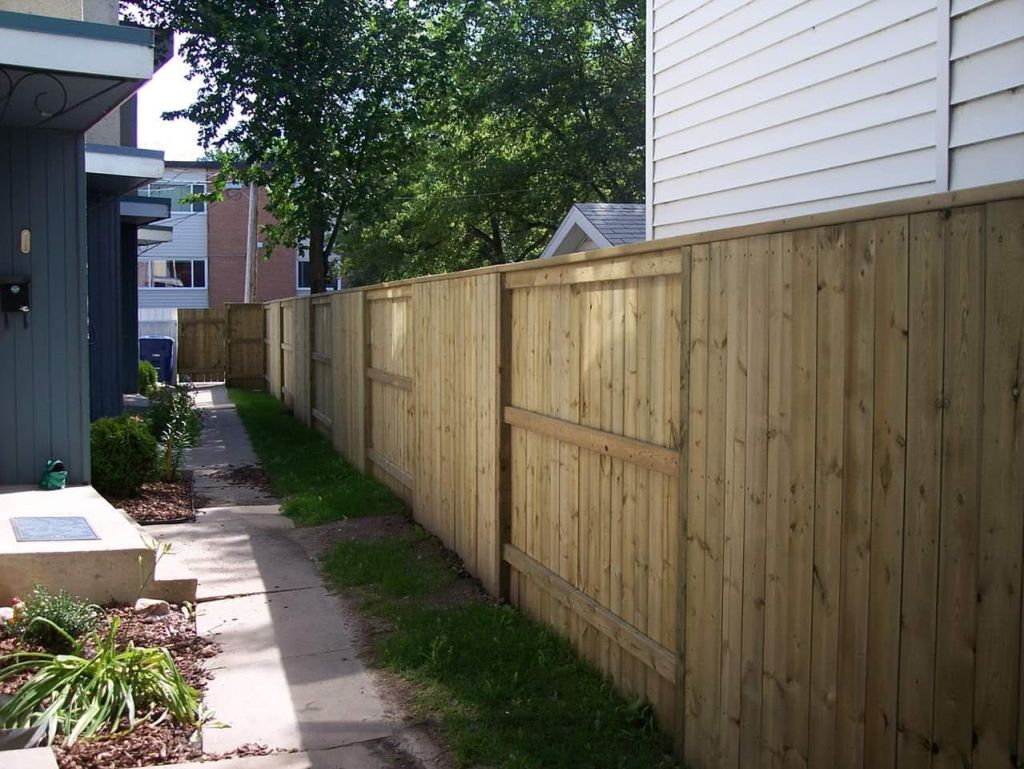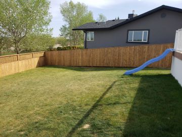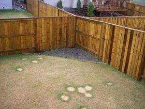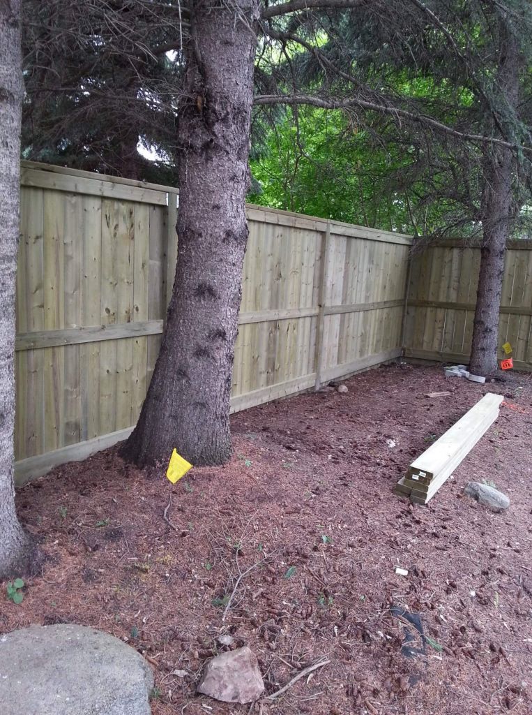 This is after replacing the existing fence with a new green pressure treated lumber standard 6 foot fence with 8 foot sections.