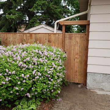 This is after replacing the existing fence with a new Brown pressure treated standard 6 foot fence and gate with 2 way latch/ handle