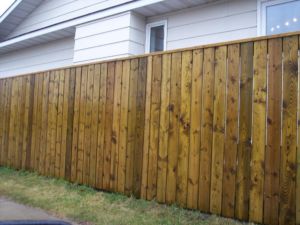 This is after replacing the existing fence with a new green pressure treated lumber standard 6 foot fence with 8 foot sections.